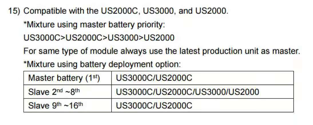 Pour la mise en parallèle de plusieurs batteries de modèle différents (US2000/US2000B/US2000C/US2000PLUS), veuillez respecter le document à télécharger (Notice de mise en parallèle).